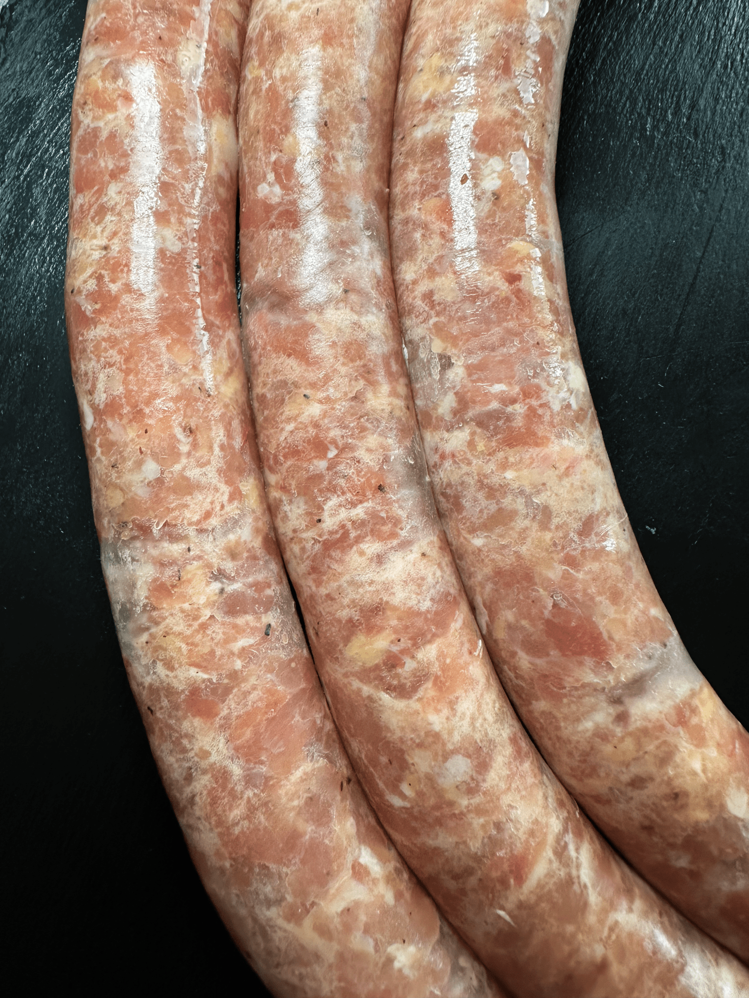 Nos chipolatas de poulet sont élaborées à partir de cuisses de nos poulets fermiers désossées et de graisse de nos canards.