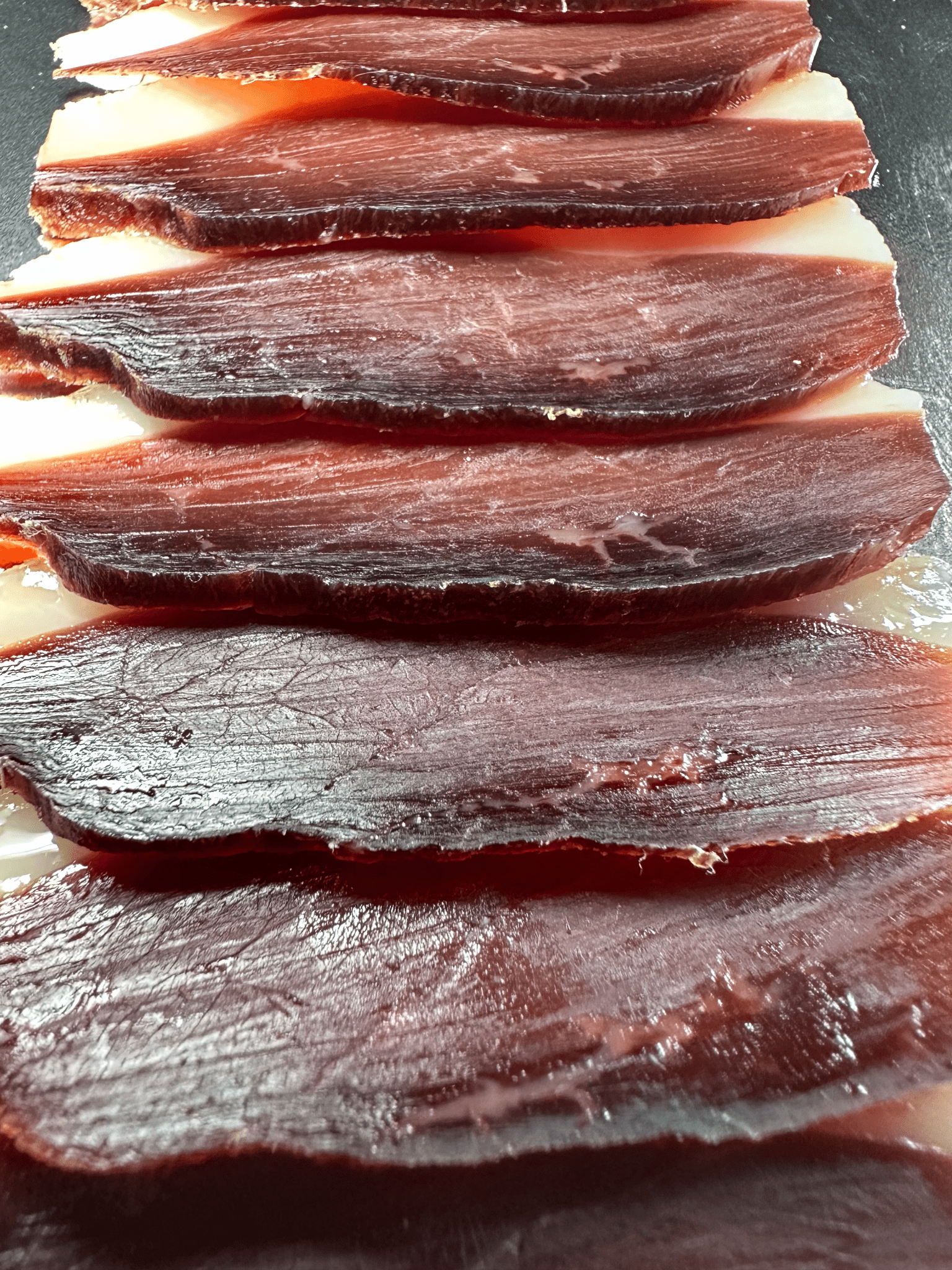 Délicatement salés pendant 24 à 36 heures, ils sont ensuite mis à sécher dans une ambiance idéale durant 3 à 4 semaines.